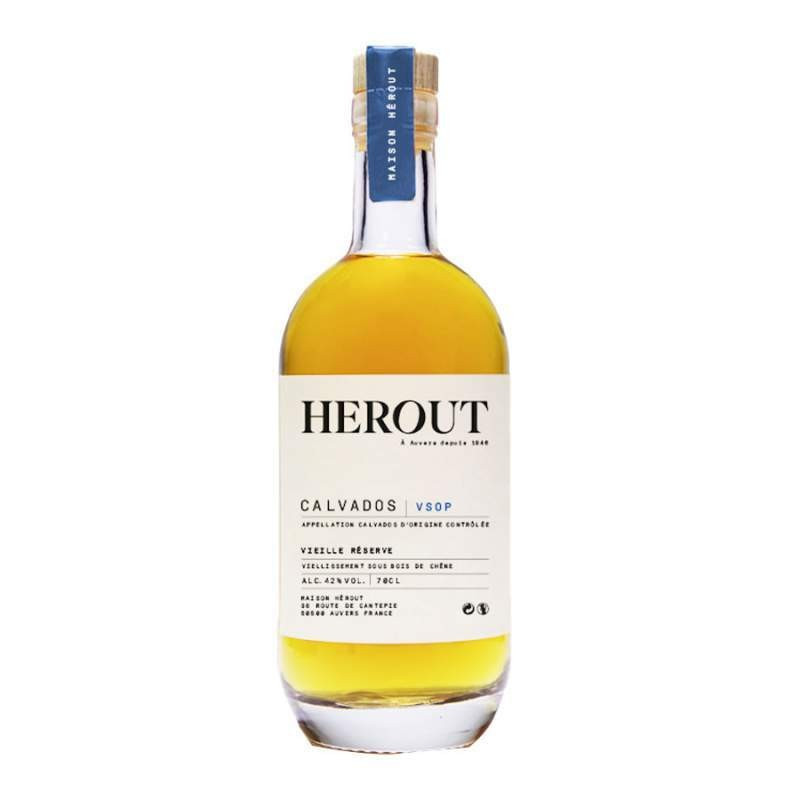 Ce Calvados VSOP a été élevé quatre ans en fûts de chêne au sein de la distillerie Hérout à Auvers, dans la Manche. En Normandie, la fabrication du Calvados se fait depuis des décennies. Né d'un assemblage d'eaux-de-vie, ce Calvados VSOP se démarque par son équilibre unique. Fine et fraiche, cette eau-de-vie, vieille réserve, possède des arômes de fruits frais et agrumes au nez. En bouche, elle est légèrement acidulée, tandis, qu'au final, elle offre un côté fruité et doux.