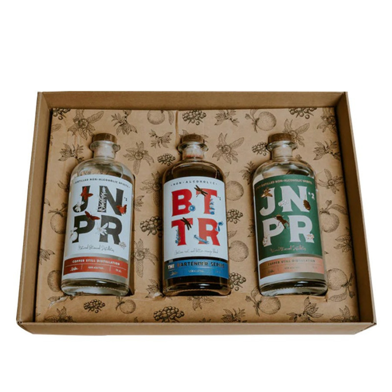 Basée en Seine Maritime, au cœur de la Normandie, JNPR propose des produits vegan, sans gluten et utilise des packagings écoresponsables. Dans ce coffret, retrouvez les 3 spiritueux sans alcool de JNPR. Ces bouteilles sont idéales pour offrir ou à déguster lors d'un moment en famille ou entre amis. Ce coffret offre des arômes variés et vous permet de vivre pleinement l'expérience JNPR, qui vise à susciter les mêmes émotions que procure l'alcool, sans les mauvais côtés. Vous pouvez donc tester ces boissons dans vos cocktails, en remplacement de l'alcool ou les savourer pures.