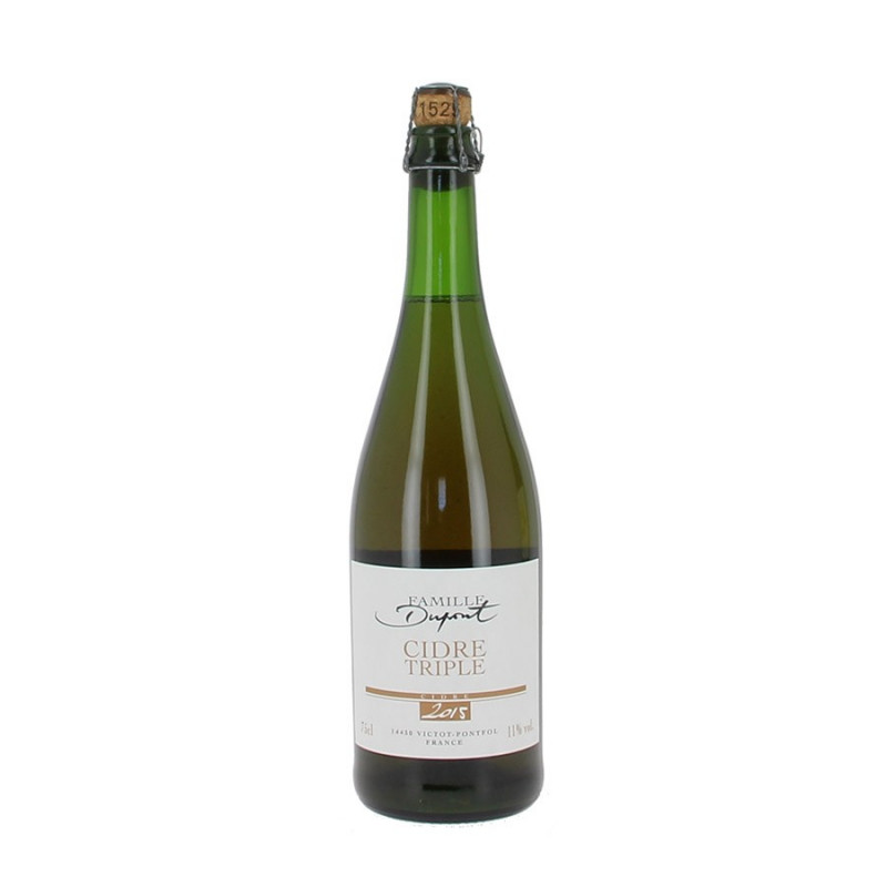 Le cidre Triple est une création du domaine Dupont. Ce cidre s'inspire des techniques d'élaboration des bières brunes de garde. Cela donne à la dégustation un cidre atypique avec des notes de chicorée et de réglisse, légèrement sur l'amertume. A découvrir sans plus tarder.