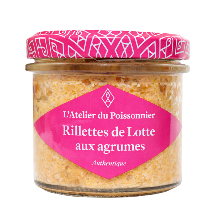 Rillettes de poisson de 90 grammes composée principalement de noix de saint Jacques, de thym et de citron. À déguster frais sur du pain grillé.