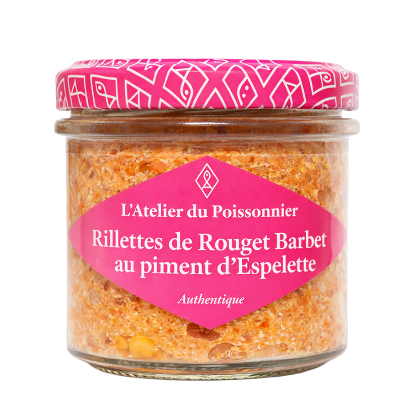 Les rillettes de rouget barbet au piment d'Espelette de l’atelier du poissonnier sont une préparation gourmande qui associe la finesse du rouget barbet, un poisson au goût délicat, à la chaleur subtile du piment d’Espelette AOP. Une recette savoureuse qui marie harmonieusement les saveurs marines et les épices douces pour un résultat équilibré et légèrement relevé.