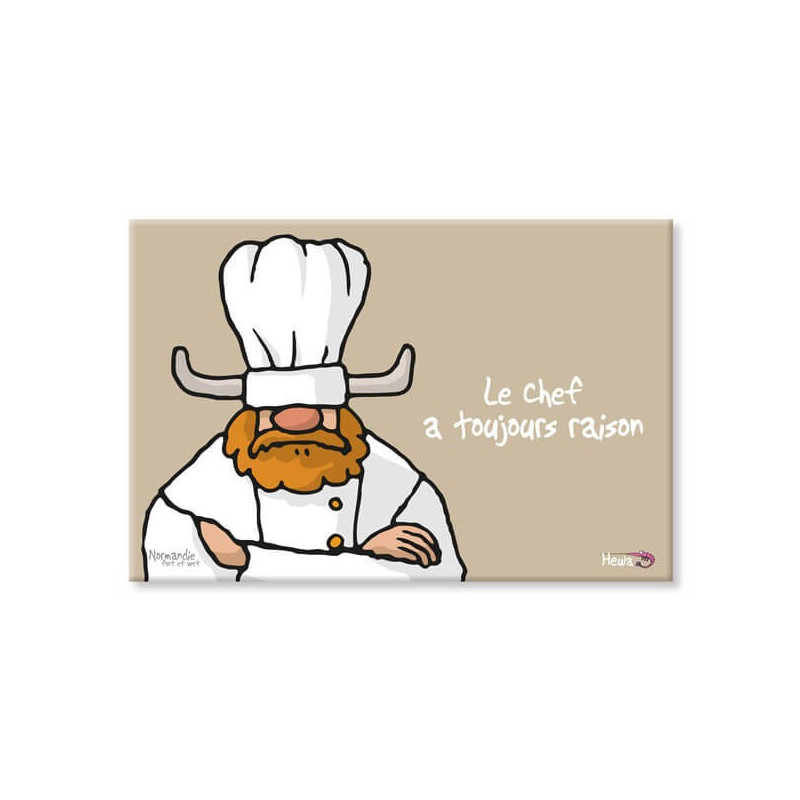 Planche à découper humoristique "Le chef a toujours raison" de la marque normande Heula.