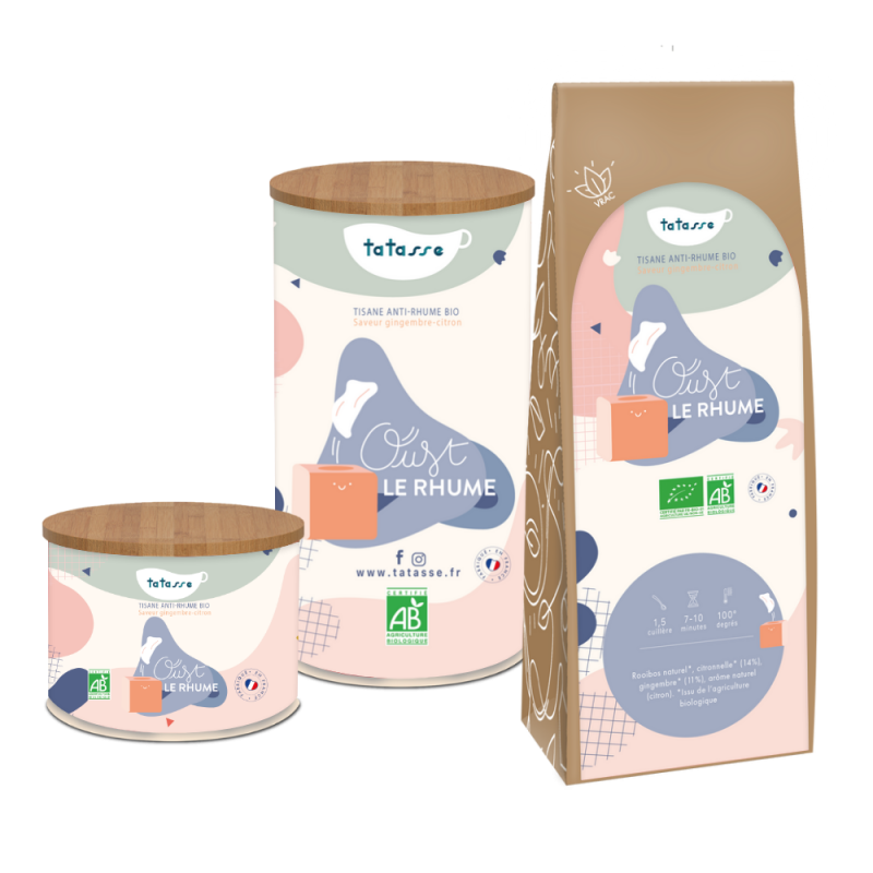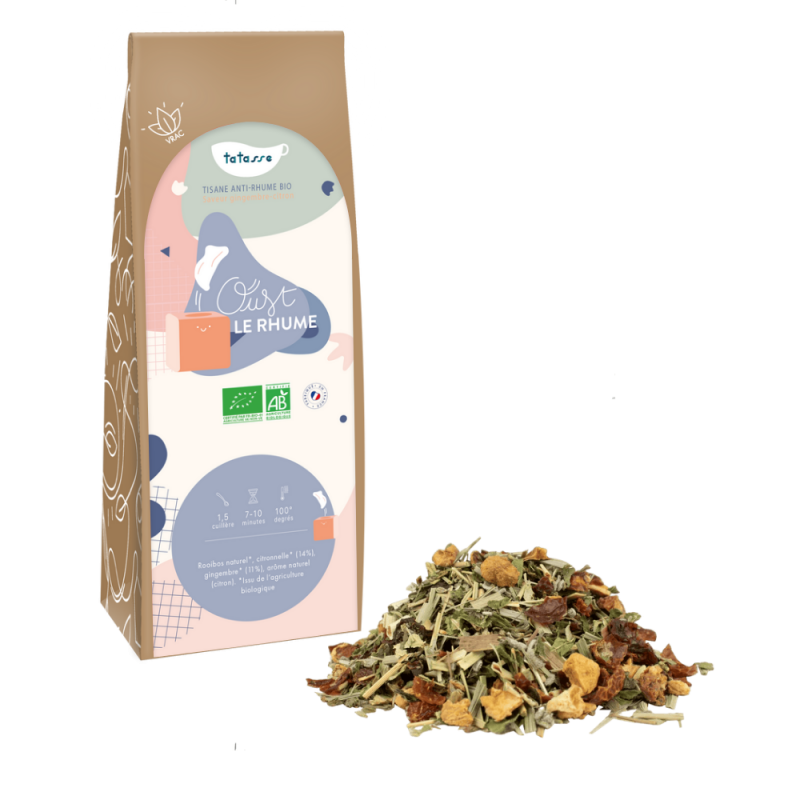 Naturellement sans théine, elle se déguste dès les premiers signes d'un rhume ou tout au long de l'hiver pour soutenir l'organisme. Certifiée agriculture biologique contrôlée (AB) et proposée en vrac dans un conditionnement éco-responsable, Oust le Rhume est le réflexe bien-être naturel de l'hiver, signé Tatasse.