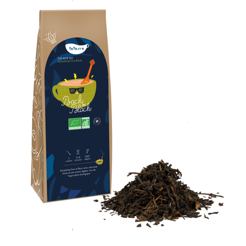 Il y a des thés que l'on respecte, et d'autres que l'on vénère. Back in Black appartient à la seconde catégorie. Ce thé noir bio Darjeeling en vrac, signé Tatasse, est une invitation à découvrir l'un des grands terroirs théiers de la planète — les contreforts himalayens de l'Inde, où altitude, brume et sols uniques donnent naissance à des feuilles d'une finesse incomparable. Le Darjeeling est souvent surnommé le champagne des thés, et pour cause. Sa liqueur dorée aux reflets cuivrés révèle un bouquet aromatique d'une élégance rare : des notes fleuries et muscatées, une légère astringence qui structure en bouche, et une longueur en fin de dégustation qui signe les grands crus. Back in Black se savoure nature, sans lait ni sucre, pour ne rien perdre de la subtilité de son terroir. Issu de l'agriculture biologique contrôlée et certifié AB, ce Darjeeling pur origine incarne l'exigence absolue de Tatasse : un thé d'exception, cultivé dans le respect de la terre et des hommes, proposé en vrac pour préserver toute l'intégrité des feuilles. Un conditionnement éco-responsable complète cette démarche vertueuse. Back in Black — pour les amateurs de grands thés, ceux qui savent que la perfection se déguste nature.