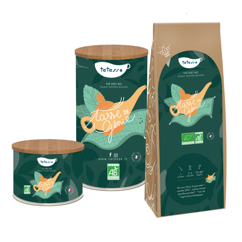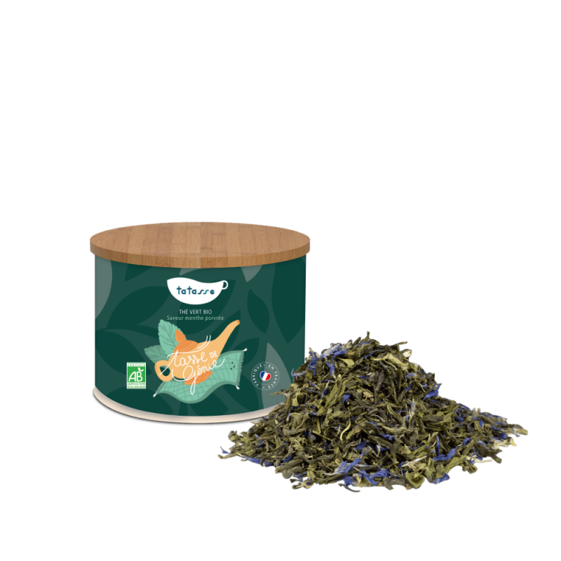Certifié agriculture biologique contrôlée (AB) et proposé en vrac dans un conditionnement éco-responsable, Tasse de Génie est le thé vert bio à la menthe de ceux qui ne font pas les choses à moitié. Signé Tatasse.