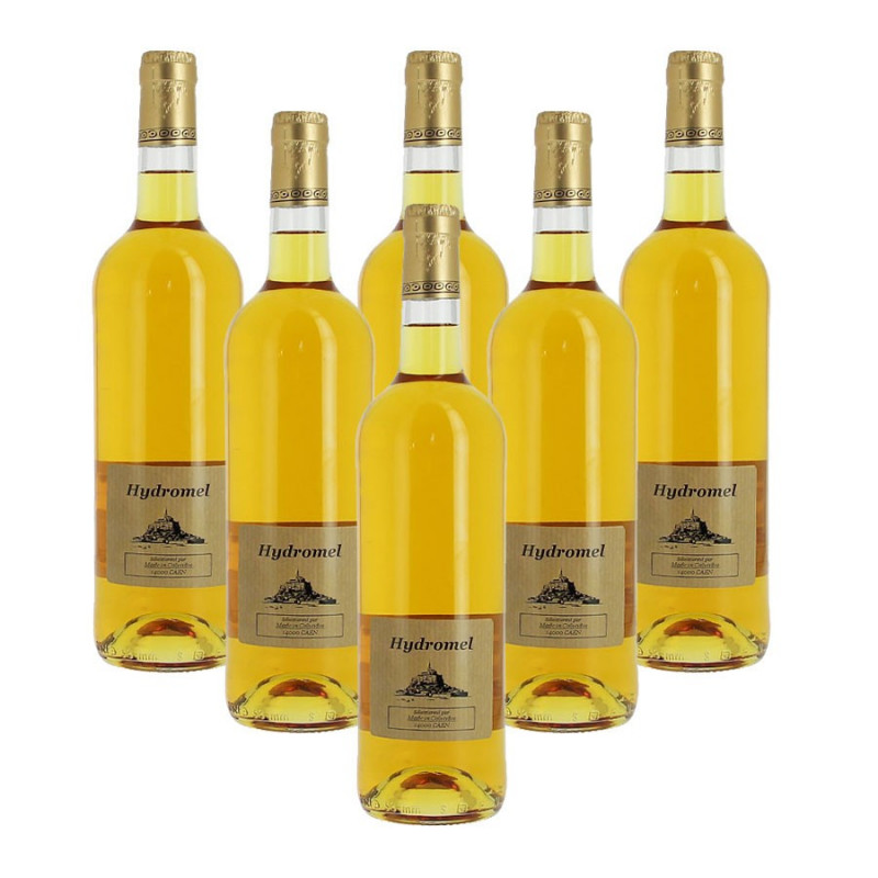 Lot de 6 bouteilles d’hydromels de 75cl. L'hydromel est un vin médiéval composé d'eau, de miel et de levures naturelles. La fermentation transforme cette boisson sucrée en alcool doux.